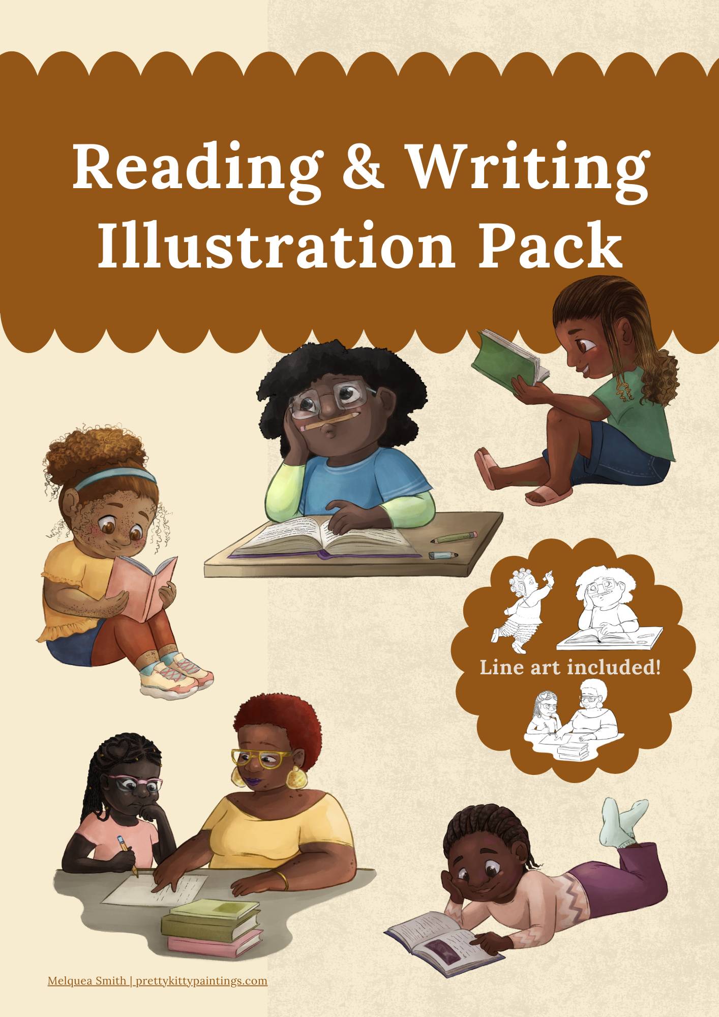 Expand your set of clip art with 5 more uniquely hand-drawn illustrations of Black kids reading and writing. From printables to presentations, you’ll add a splash of color to your projects!